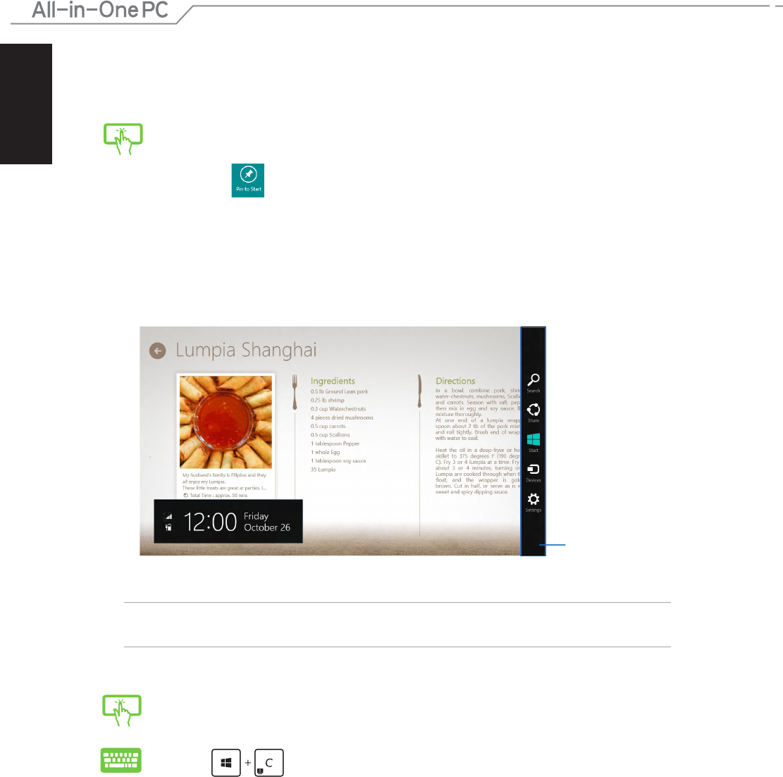 Per attivare la Charm bar utilizzate il touchscreen o la tastiera del vostro All-in-One PC.