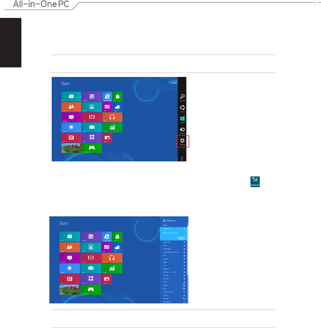 2. Dalla Charm Bar selezionate Settings (Impostazioni) e cliccate sull'icona di rete .